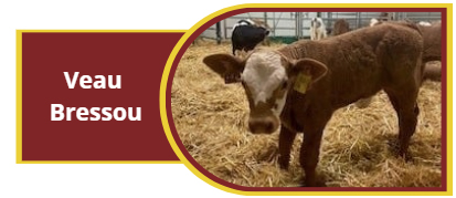 Le veau Bressou est une marque propre à Bovi-Coop :Issu à partir de veaux croisés de 3 semaines Alimenté au lait entier fourni par Bovi-Coop et/ou par nos adhérentsVeau de lait haut de gamme Où peut-on trouver le Bressou ? Les boucheries près de chez nous : Carrefour à St-Denis-les-BourgBozon Gérard à Bourg-en-BresseDaujat à ViriatPaturel Père & Fils à ArsContion Jérôme à Pont d'AinChez Binaz (74)Sannicolo Publier (74)ETC ... Issu de fermes locales... Gaec de Ste Colombe à MarbozGaec des Cours à DomsureGaec du Mollard à EtrezGaec SN2A à FoissiatGaec du Mont Blanc à St-Germain-sur-RenonETC ... N'hésitez pas à contacter notre technicienne pour en savoir plus sur notre production de Bressou : Séverine PAGE06.09.71.99.78.47spage@bovicoop.fr